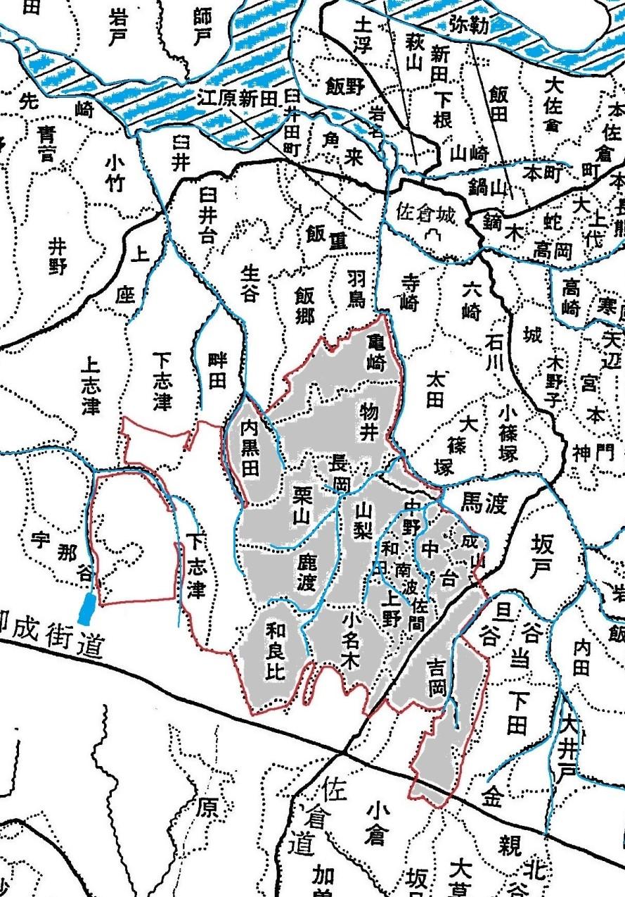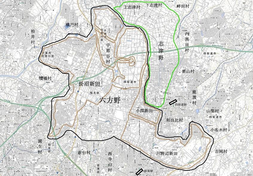 ・山梨村、鹿渡村、和良比村、小名木村、上野村(以上5か村はすべて四街道市域)