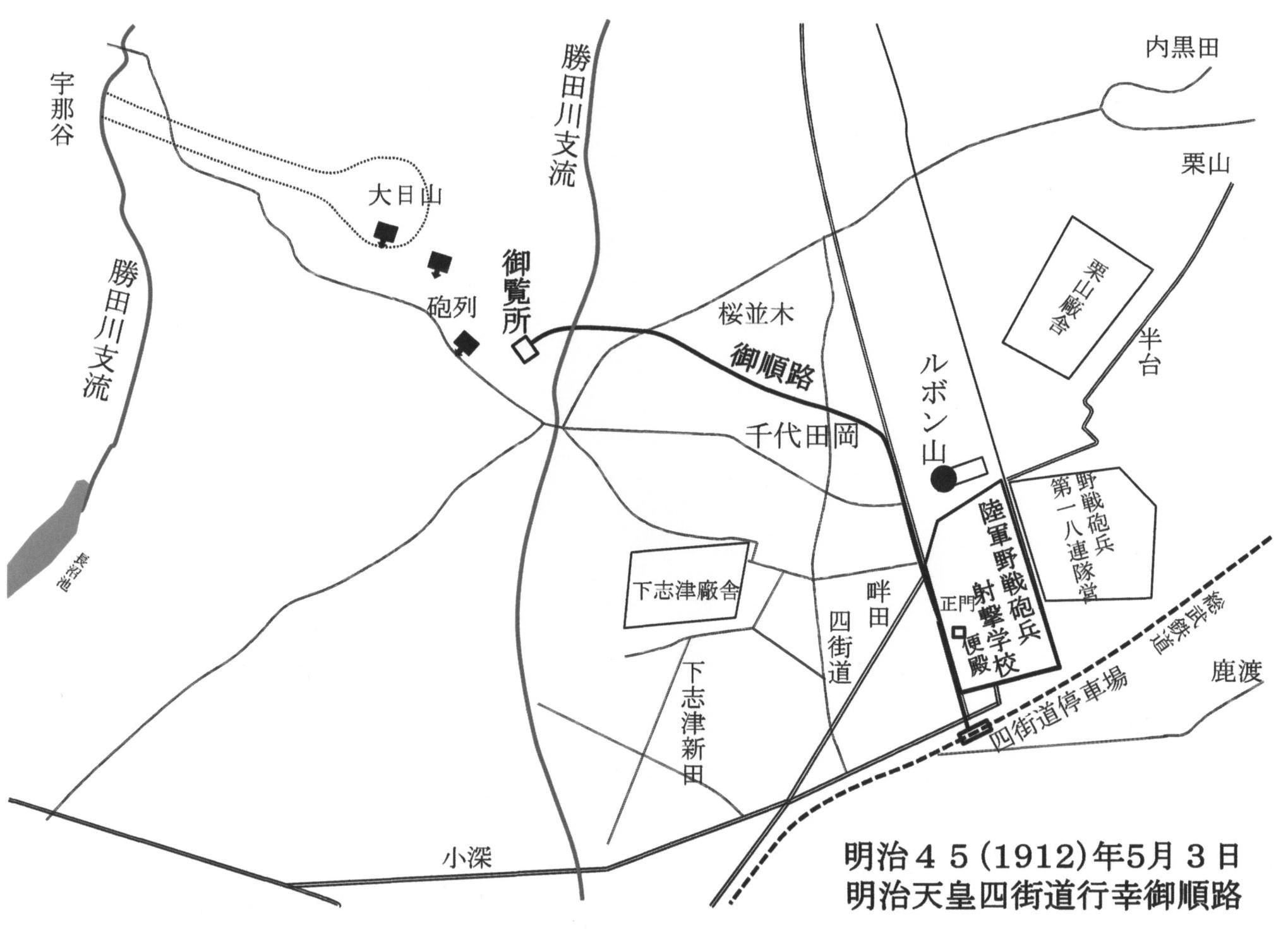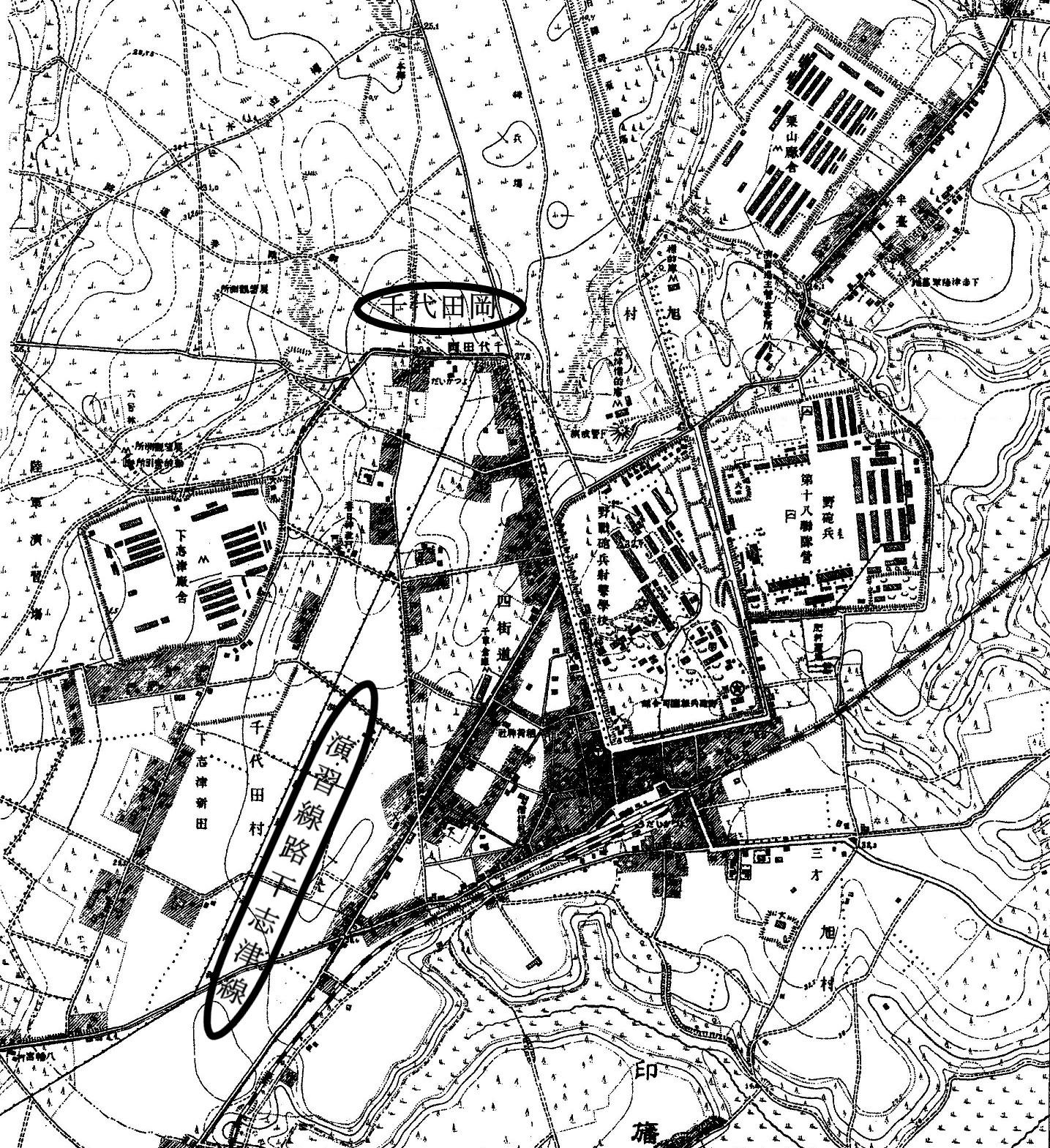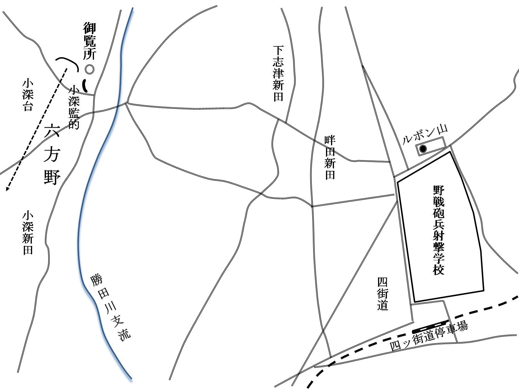 明治19年4月、陸軍は大砲演習場の北端に砲兵射的学校を開校しますが、同27年12月に総武線四ツ街道停車場が開業すると、明治30年に校名を野戦砲兵射撃学校と改称して移転すると、これがきっかけで周辺に町場が形成されます。