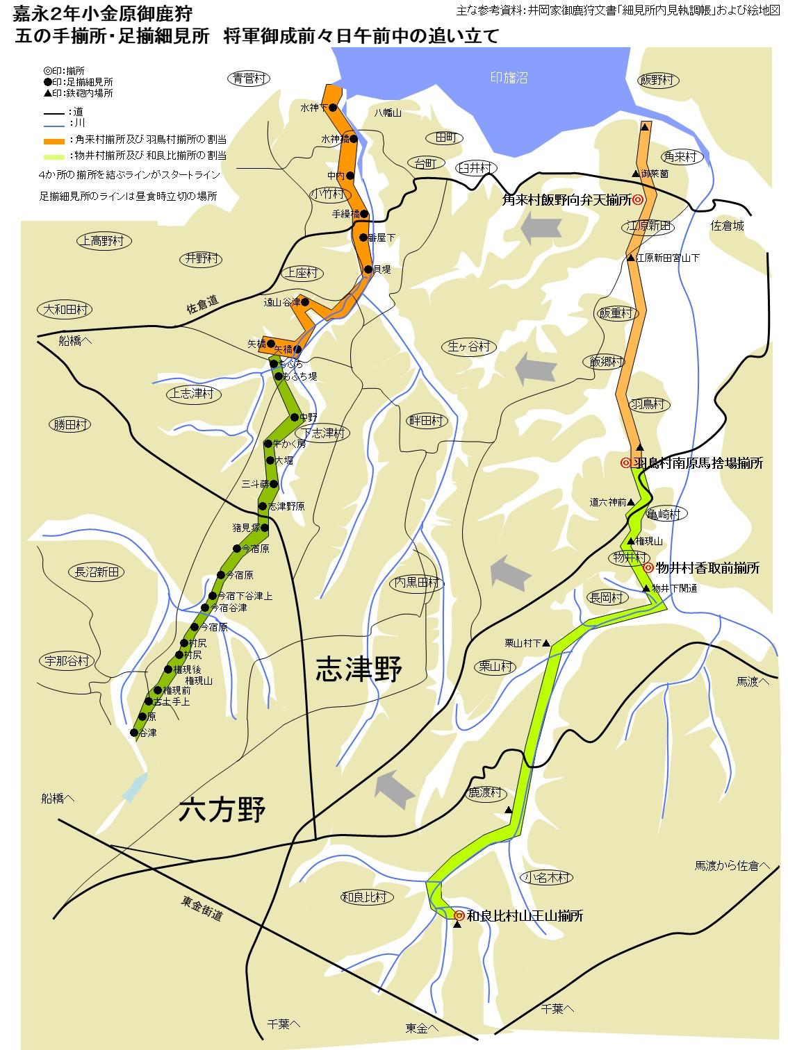 私は四街道市長岡の井岡家に残る嘉永2年の小金原御鹿狩文書の整理・調査をきっかけにして、小金原御鹿狩に関する千葉県内はもちろんのこと、埼玉県・茨城県・東京都の、主として勢子人足側の資料を調査・分析して、約5万人の勢子人足の猪鹿の追い立ての実態を浮き彫りにしました。
